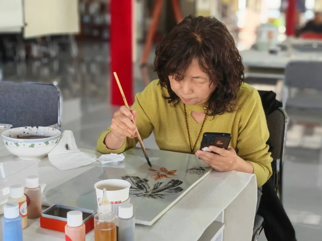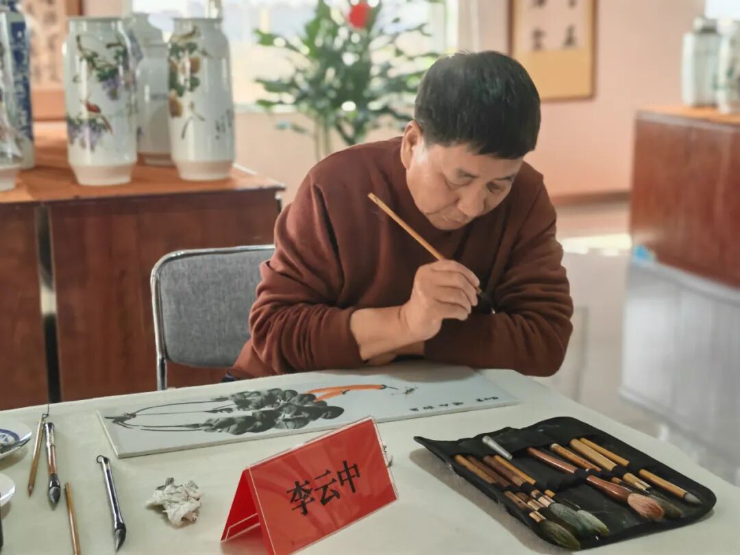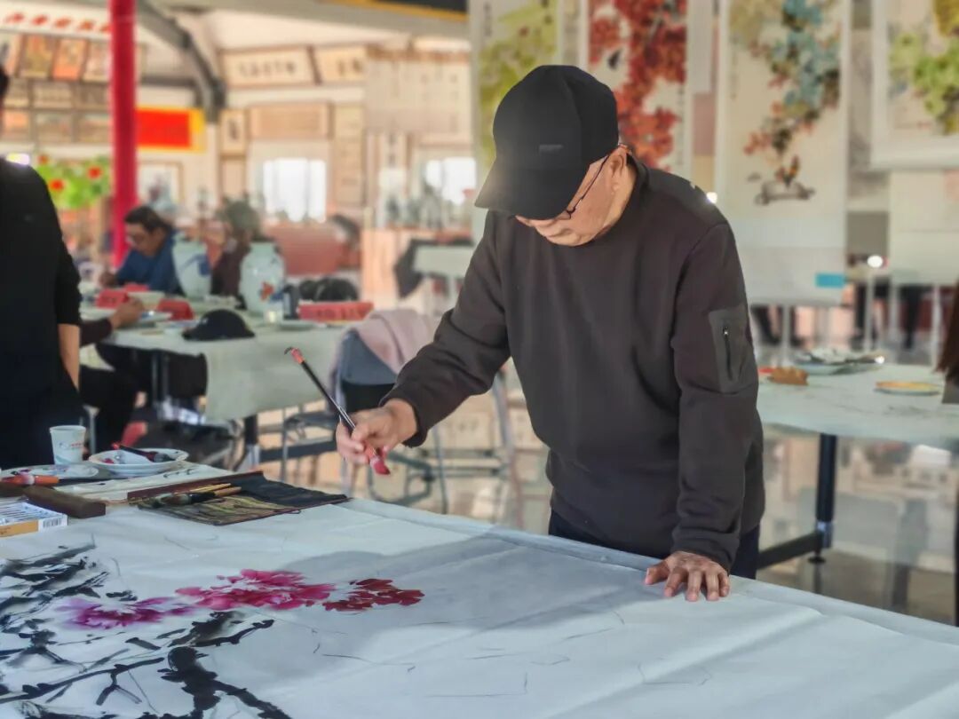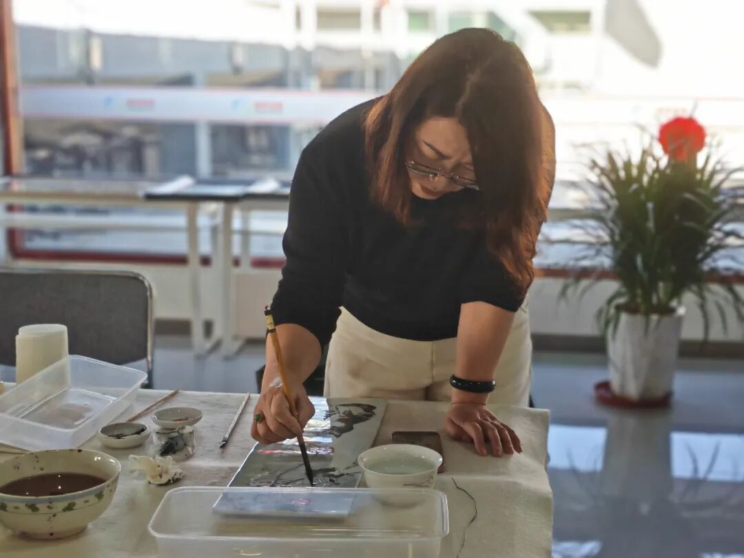 致辞环节落下帷幕后,各位书画名家移步创作区。现场墨香四溢,书画家们或凝神构思,或挥毫泼墨,山水花鸟、篆隶楷行跃然纸上,既有对大好河山的礼赞,也有对时代新风的描摹。绘宇职工代表也积极与业内前辈探讨、交流,在交流互动中感受传统文化魅力。