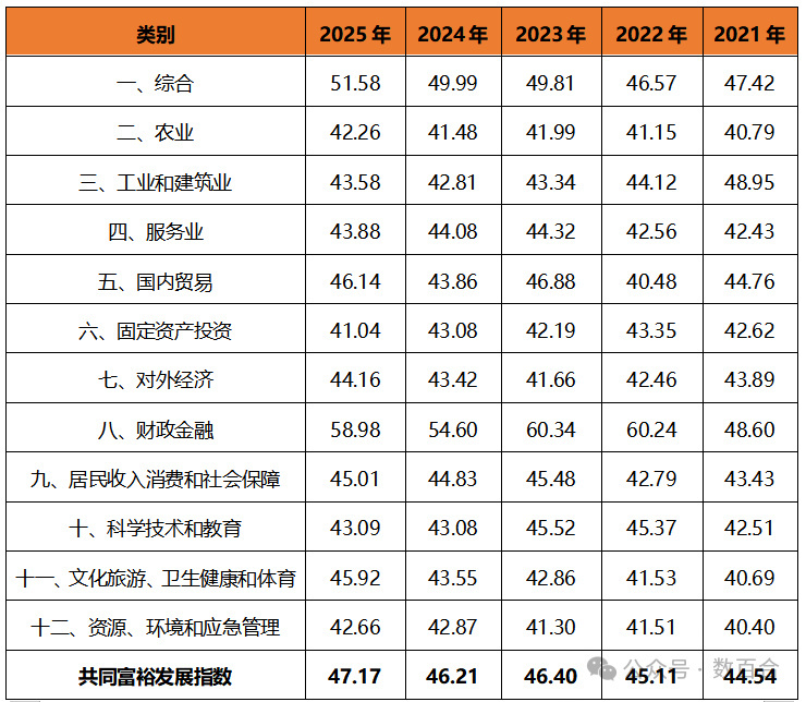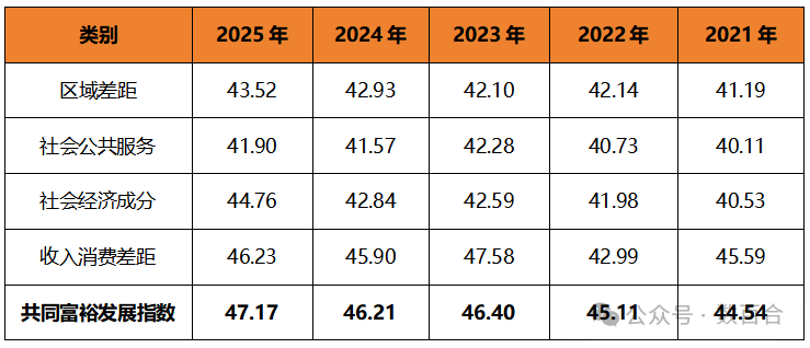 2024-2025年:指数回升至47.17,增幅提升0.96个百分点,成为“十四五”时期增长幅度最高的年份,呈现经济复苏企稳、共享发展提质、均衡发展提效等因素共同发力。